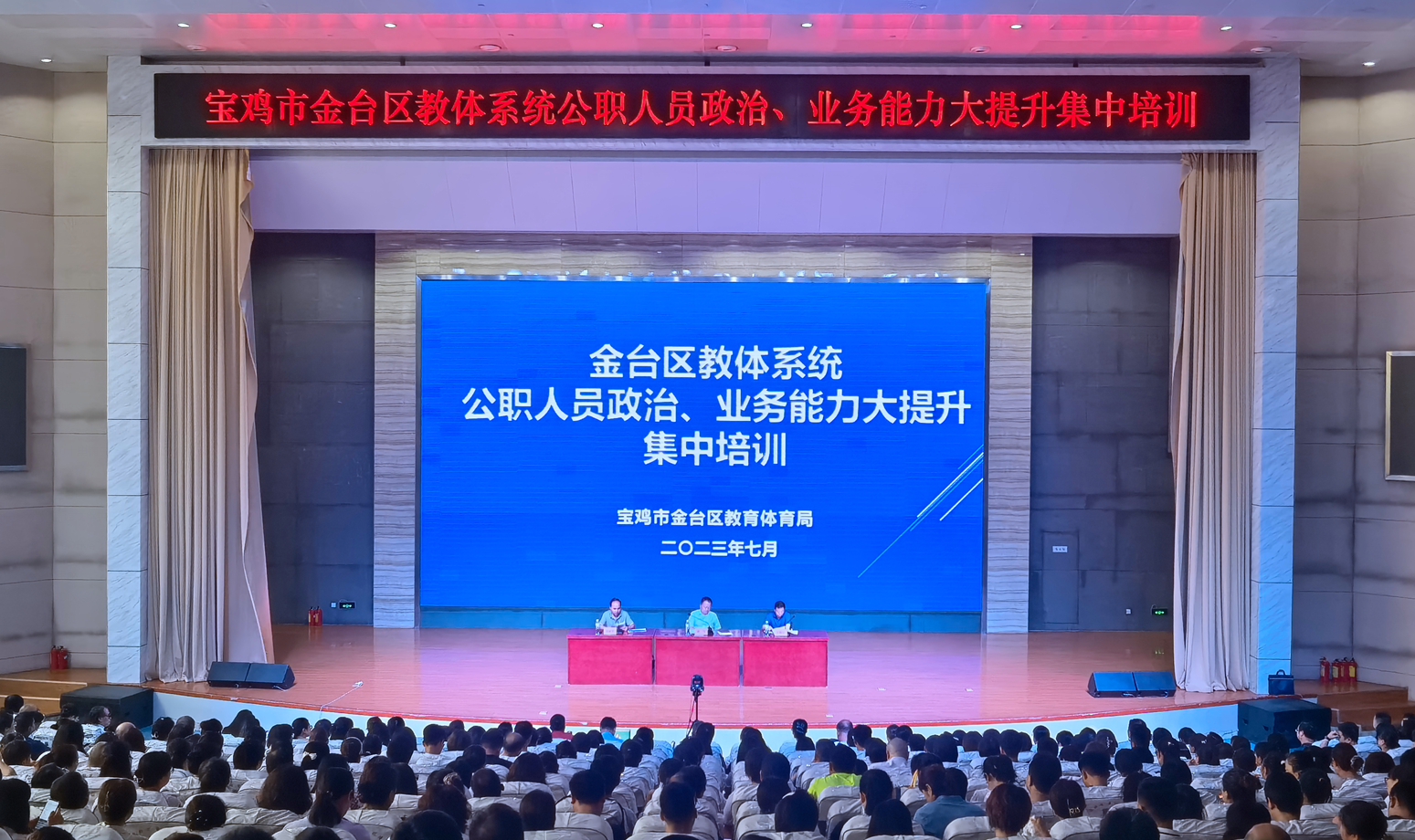 7月12日,金台区教体系统公职人员政治、业务能力大提升培训在宝鸡教育学院和宝鸡文理学院开班,全区所有公办幼儿园、初中、西片区小学1600名公职人员先期参加培训。区教体局党组书记、局长郝伟参加开班仪式并作动员讲话,区教师进修学校校长宋亚军详细介绍了培训实施方案,开班仪式由区政府教育总督学王利军主持。