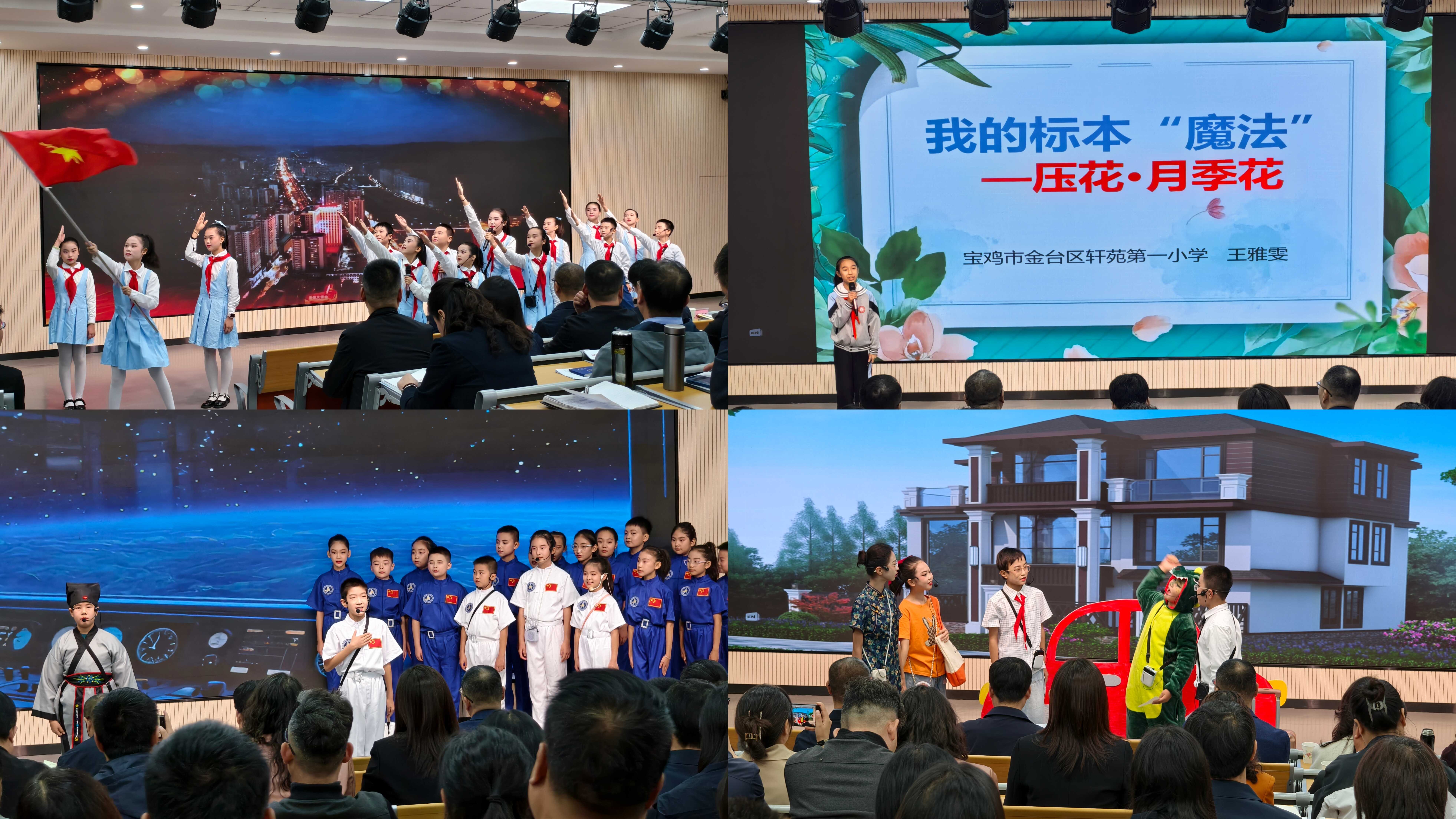 会议展示了"双减"政策下学生综合素养发展成果。学生们通过配乐朗诵、情景剧表演、科学标本讲解、信息科技作品展示等形式,展现了德智体美劳全面发展的育人成效。