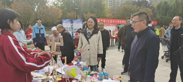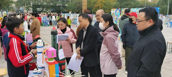 早上7点半,参赛单位陆续抵达现场,在指定位置精心布置展台。所有工作人员分工明确、配合默契,有的工作人员热心帮忙布展,有的耐心为师生提供指导,有的认真答疑解惑。布展完成后,评委迅速分小组开始评选打分工作,他们穿梭于热闹的人流之中,仔细观察每一件作品,认真倾听小讲解员们精彩的讲解,专注地观看作品演示,然后谨慎客观地给出评分。
