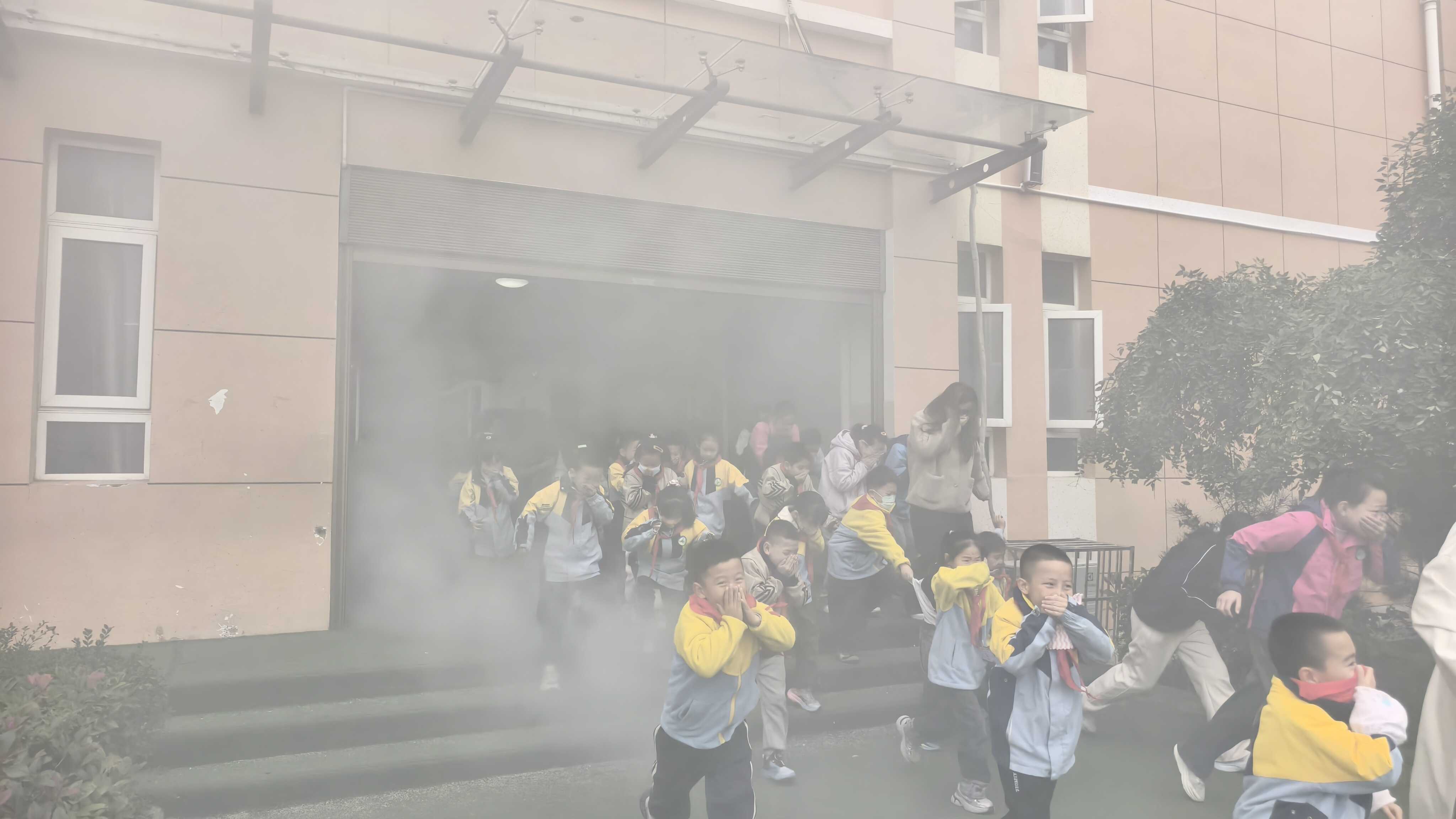 疏散演练环节组织严密、响应迅速。石油小学、新福园小学、李家崖小学等校在警报拉响后,立即启动应急疏散预案,学生在教师引导下弯腰低姿、捂住口鼻,沿预定路线快速有序撤离;龙泉小学、宝平路小学、金利苑幼儿园等单位也在3分钟内完成全员安全转移,整个过程紧凑高效,切实增强了师生应对突发火情的实战能力。