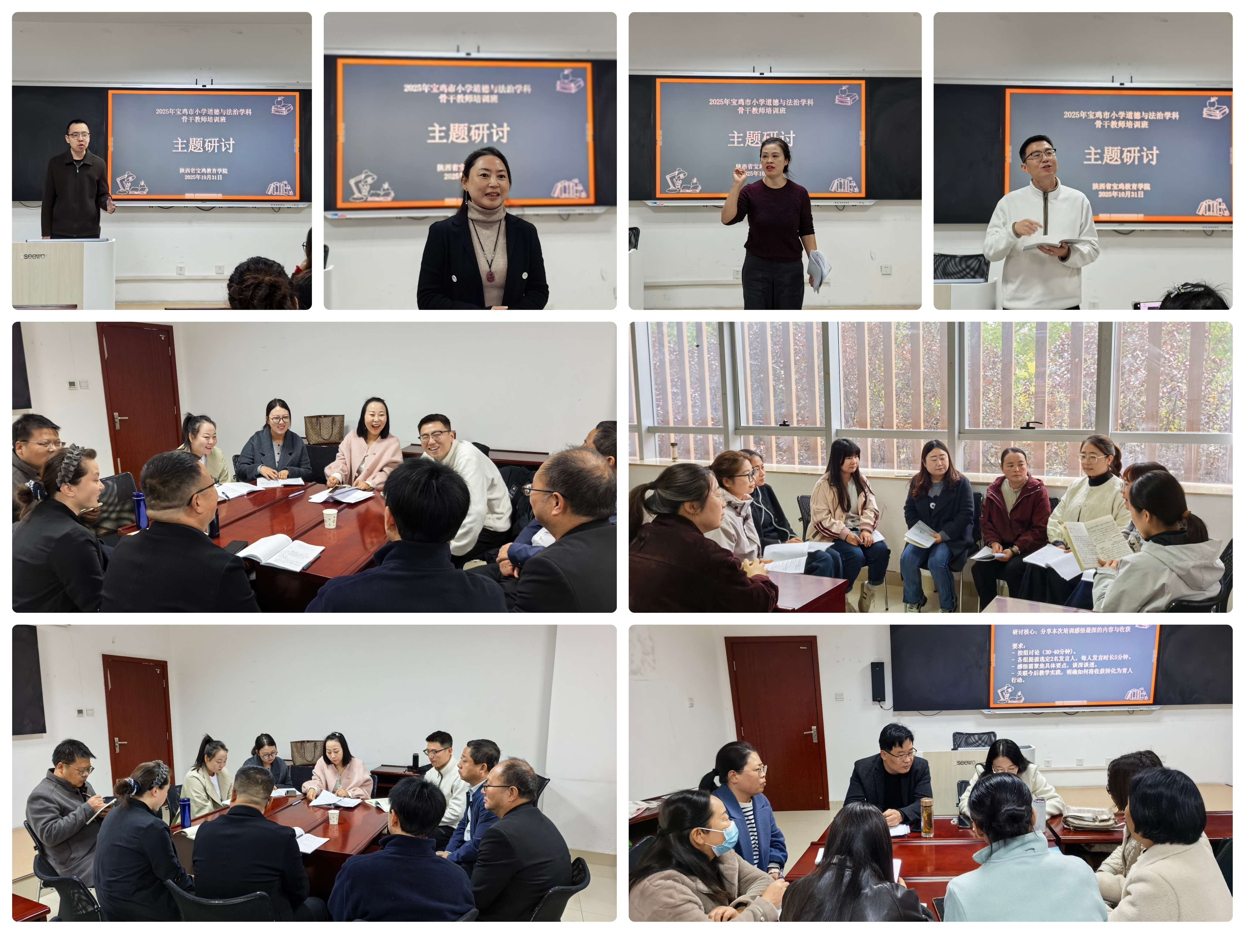 10月26日至10月31日,宝鸡市小学道德与法治学科骨干教师培训在宝鸡教育教育顺利举行,来自全市的50名教师参加了培训。本次培训围绕“夯实理论基础、聚焦课堂实践、深化教学研讨”三大板块,通过丰富的课程设置与实践环节,为参训教师搭建了学习提升与经验共享的优质平台。