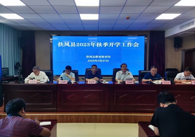 为确保秋季开学工作开好局、起好步。8月27日下午,扶风县教育体育局在三楼会议室召开秋季开学工作会,会议对2023年秋季开学工作和近期重点工作进行了安排部署。县教体局班子全体成员,各镇街教育助理员,局直各单位负责人,局直各中小学校长、幼儿园园长,各初中、中心小学校长,局机关各股室负责人共计50余人参加会议。会议由局党委委员、副局长李向林主持。