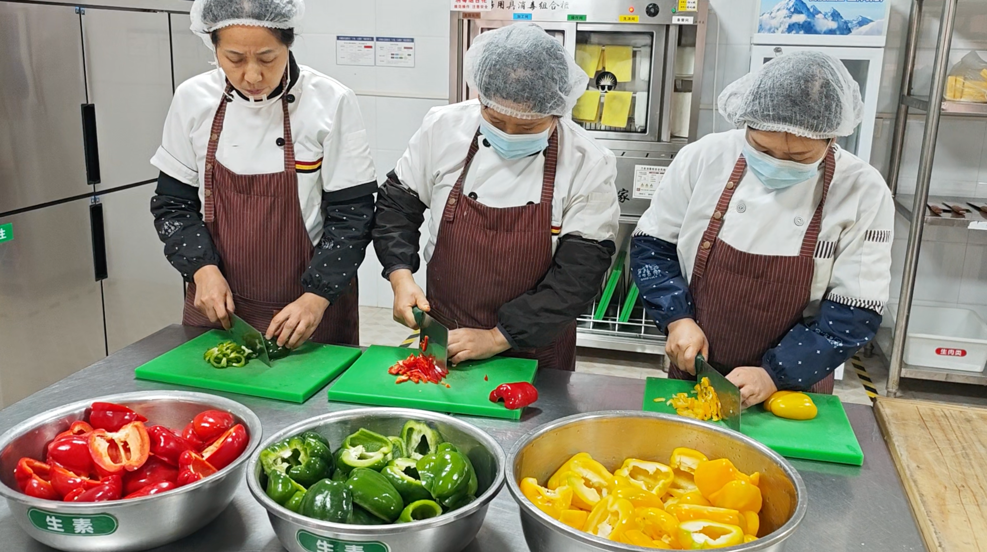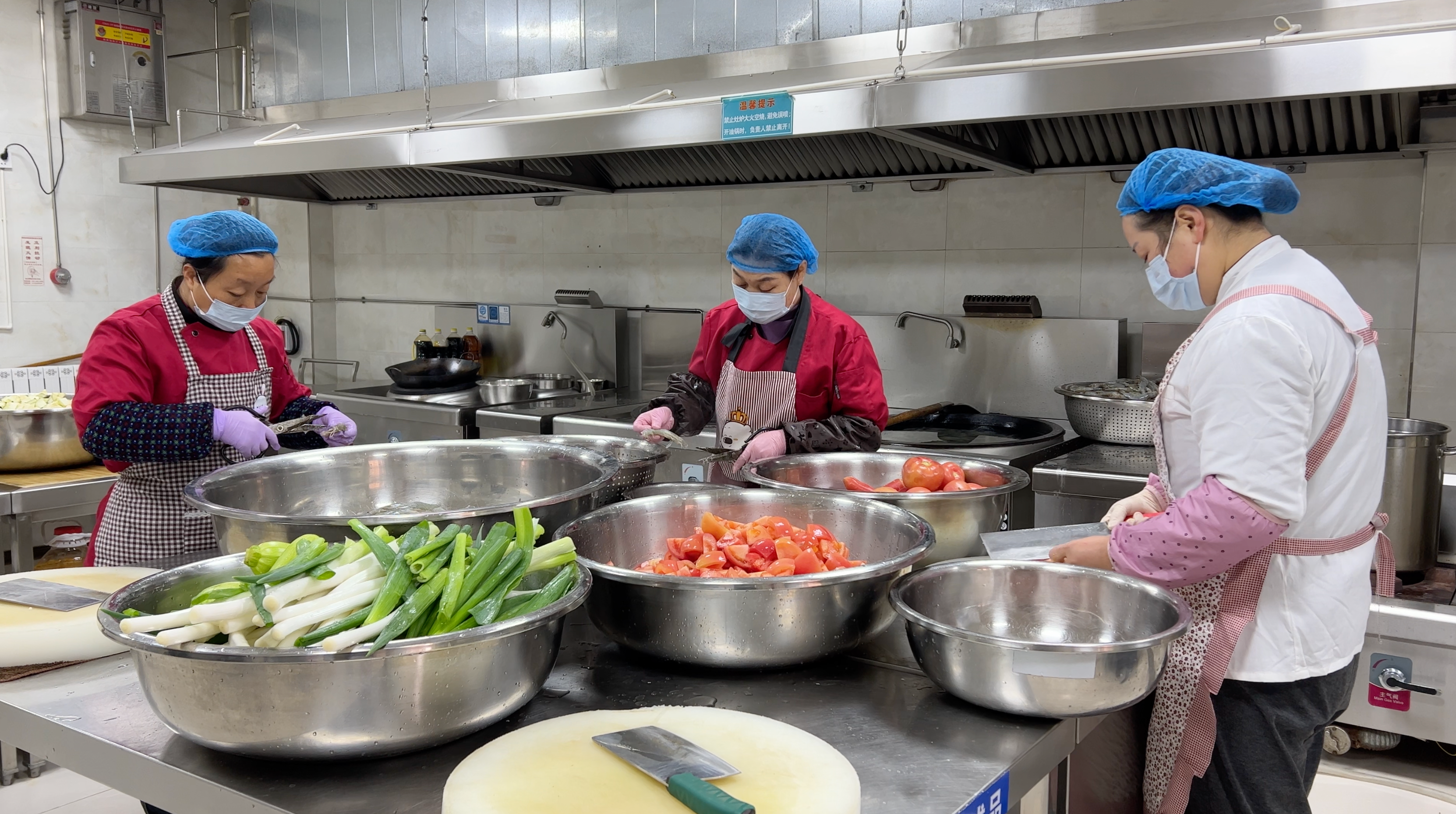 肉类焯水、半荤菜炖煮、蔬菜现炒……越来越多的家长走上后厨岗位,用心为孩子烹制“家的味道”。这一模式既让家长实现在“家门口”就业,又能方便接送孩子,赢得了广泛好评。