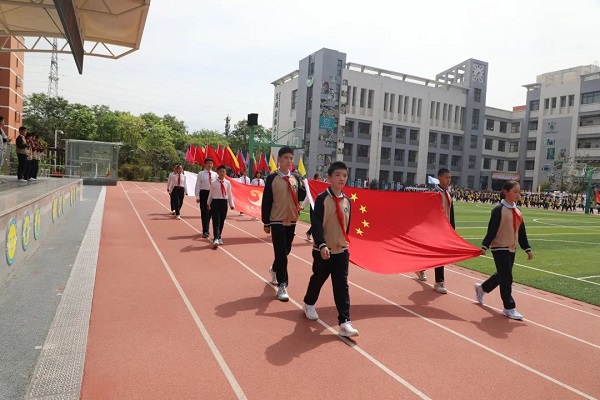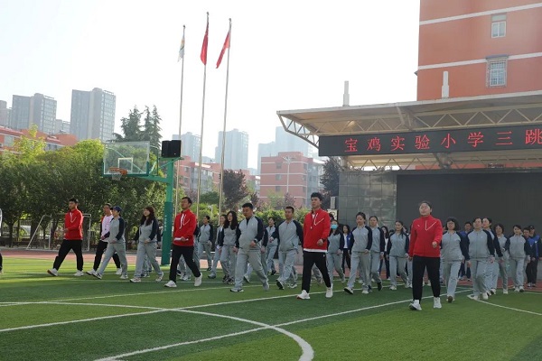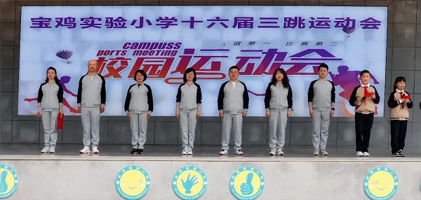 春风送暖,鲜花竞开,彩旗飘扬。4月26日下午,宝鸡实验小学隆重举行第十六届三跳运动会开幕式。伴随着《运动员进行曲》激昂的旋律,国旗、校旗、旗林、运动员、裁判员代表方阵以威武的气势步入会场。各班运动员步伐整齐,口号嘹亮,充分展示了宝小学生积极向上、健康快乐的精神风貌。
