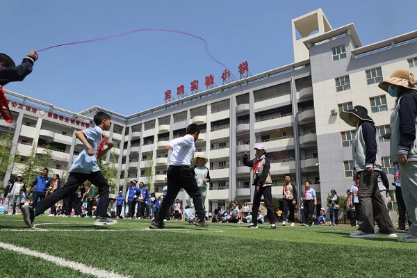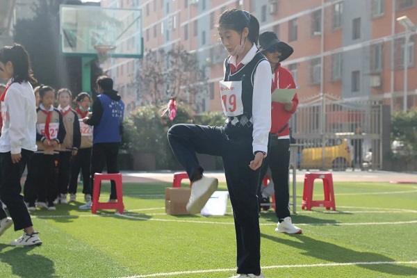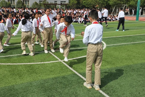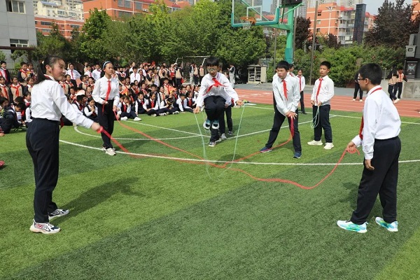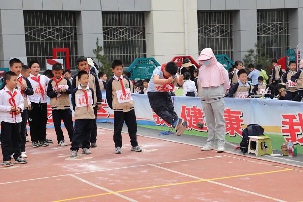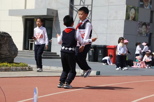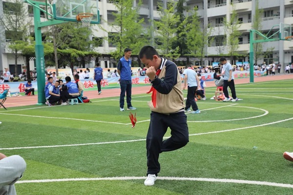 4月27日上午8点30分,三跳比赛正式拉开帷幕。此次三跳运动会共设跳绳、毽子和沙包跳方三大类。跳绳设有一分钟竞速跳、双摇跳、挽花、带人跳、双人单飞、双人钻绕等花样较多的项目;集体项目有2分钟一长“8”字竞速跳、长绳“1-5-1-0”、“十字大绳带小绳”、“双绳内抡”等多人次、考验集体协作和配合的项目;踢毽子设立的小项有两分钟竞速踢、左右脚对踢、单拐踢、跳踢、左右膝对顶等;沙包跳方主要有双脚夹沙包掷远、单脚跳方、双脚跳方、九方等小项。每一个比赛项目都深得全体师生的喜爱。