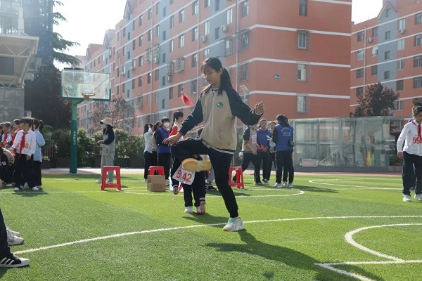 在比赛中,当裁判的哨音响起,运动员们一个个全神贯注,双手紧握跳绳,自信地站在属于自己的一片场地上不约而同地飞了起来,轻盈的身体在小绳两边来回飞舞,小绳亦有节奏地上下翻飞,抑扬顿挫,人绳合一,化作了一条条美丽的彩虹!一根小小的跳绳,连接的是团结与友爱;一枚小小的毽子,传递的是勇气与力量;一个小小的沙包,演绎的是奋斗与拼搏;一个个精彩的瞬间,留下的却是辉煌与永恒!再看看各年级观赛的学生们,他们一边为运动员们加油助威,喝彩声、加油声此起彼伏,一边不断地给梦想舞台宣传组送去通讯稿,有的向取得佳绩的运动员表示祝贺,有的则是对参赛失利的运动员以安慰鼓励。