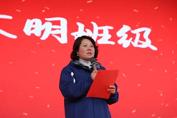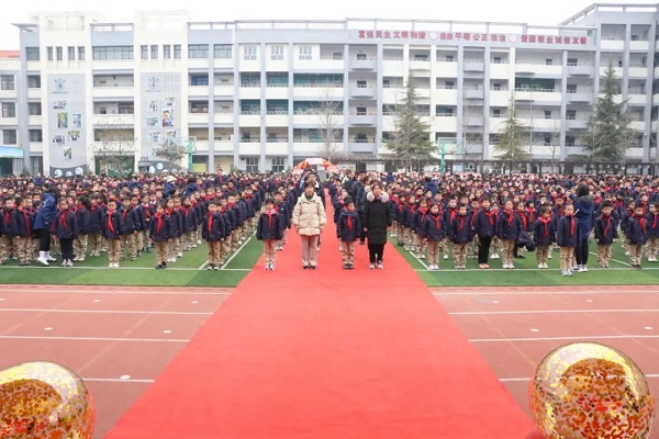 典礼上,学校党支部书记、校长、少工委主任崔婷做新学期致辞。她勉励全体同学振奋龙马精神,以龙腾虎跃、鱼跃龙门的精气神迎接新学期,立下报国志向,修养高尚品行,练就过硬本领,追逐梦想,快乐成长!