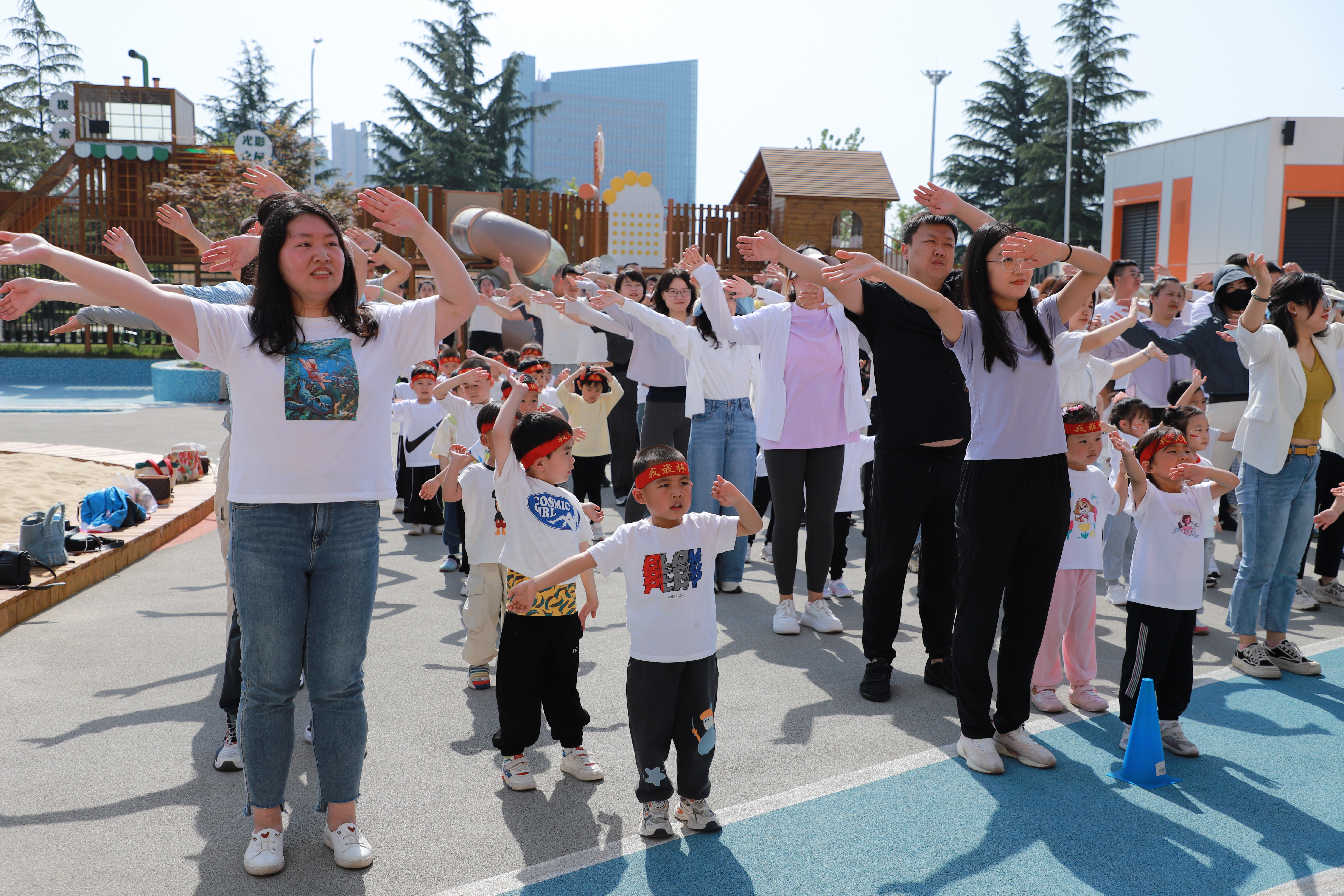 大、小运动员们在老师的带领下跟随音乐一起跳着活力四射的热身操。趣味十足的韵律操和温馨的亲子互动让全场都充满着爱的气息。