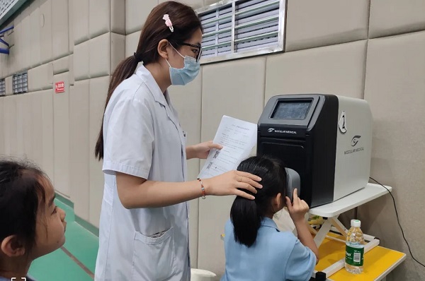 宝鸡市第二人民医院眼科医院为宝鸡实验小学全体学生进行了视力检测,包括左右眼裸眼视力及左右眼屈光度,并对视力问题学生进行了一对一询问登记及后期免费复诊活动。