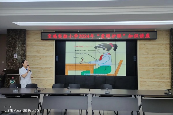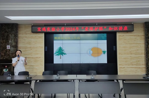 宝鸡市第二人民医院眼科医院毛治平院长对全体师生进行“爱眼护眼”知识讲座,让孩子们了解了眼睛的结构及眼睛是如何工作的?知道了近视是怎样形成的?近视的危害是什么?日常生活中怎么做才能保护好自己的眼睛?