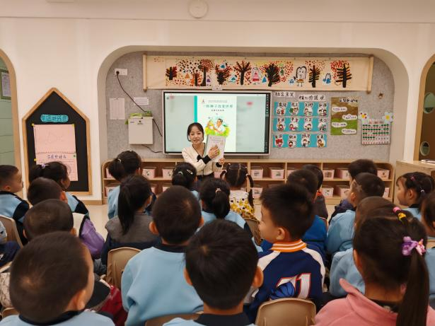 同时,教师借助绘本《一粒种子改变世界》,生动讲述袁隆平院士与杂交水稻的故事,带领孩子们走进一粒米的“生命旅程”。从播种、生长到收割、加工,孩子们在图文并茂的讲述中,理解了粮食的来之不易,也在心中种下了“一粥一饭,当思来处不易”的种子。
