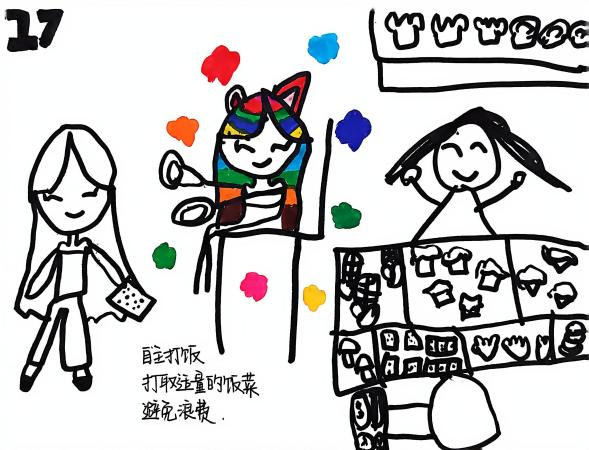 为将节约教育延伸至家庭场域,幼儿园发起“家园共护粮”行动。一方面,鼓励家长与孩子共同完成《珍惜粮食》调查表,通过记录家庭饮食与剩菜情况,增强孩子对粮食消耗的直观认知;另一方面,开展“晒晒我家的一餐”亲子活动,引导家长分享与孩子共同备餐、践行光盘的温馨时刻,营造爱粮节粮的家庭氛围。