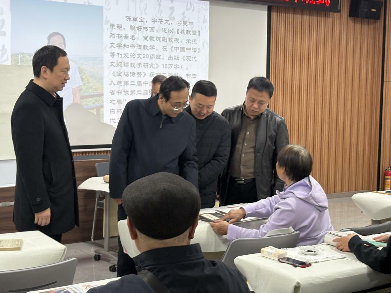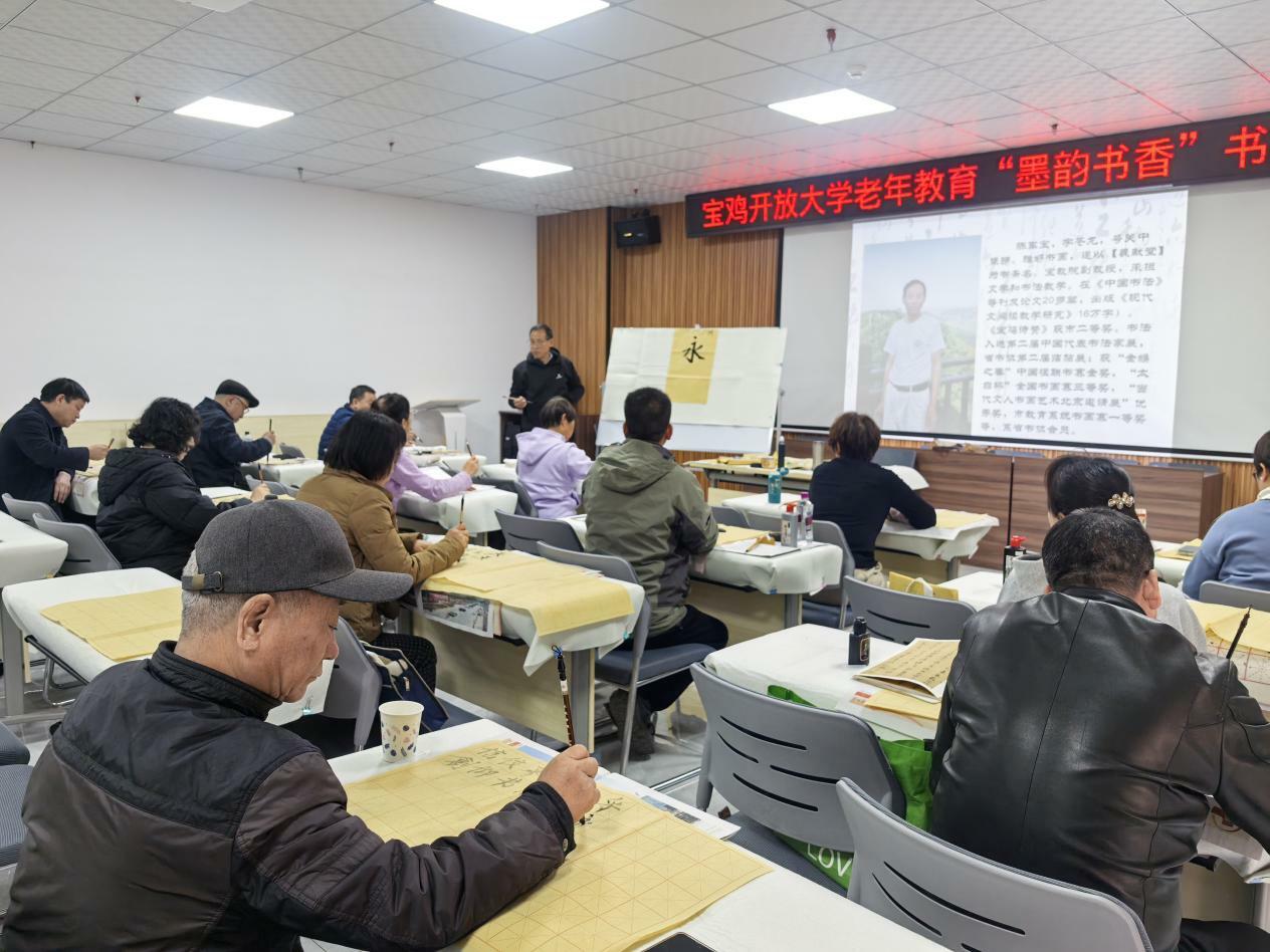 11月26日,宝鸡开放大学老年教育西建社区教学点揭牌仪式在西建社区举行,宝鸡开放大学、金台区委社会工作部、十里铺街道、西建社区主要负责同志,以及“墨韵书香”书法班教师、全体学员,社区工作人员和群众代表共50余人参加。活动由宝鸡开放大学副校长王晓伟主持。
