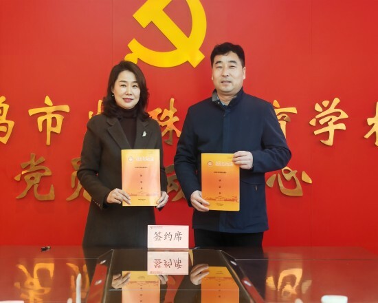 市特教学校党支部书记、校长蒋志瑛与咸阳师范学院教育科学学院党委书记张宏签约