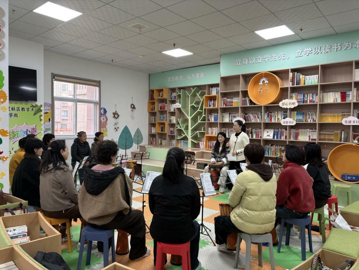 开班仪式上,教育培训科负责人详细介绍了开设课程的背景、意义与筹备情况。近年来,学校始终深耕老年教育领域,积极探索贴合老年群体的课程开发模式与教学实施路径,牢牢坚守“需求导向、适老为本、公益普惠”的核心原则,在传承传统文娱活动的基础上,不断推陈出新,全力拓展适老型课程的全新样态,用心满足老年群体多样化的精神文化需求。非洲鼓以其节奏明快昂扬、上手简单易学、注重团队协作的独特优势,成为适配老年群体的优质课程,也是贴合大家学习需求的理想选择。通过击打鼓点,不仅能锻炼手脑协调能力、促进身心健康,更能为老年朋友搭建沟通交流的平台,增强归属感与获得感。同时,希望社区能够全力做好各项保障工作,筑牢安全防护防线,提供细致周到的服务,营造温馨和谐的学习氛围。