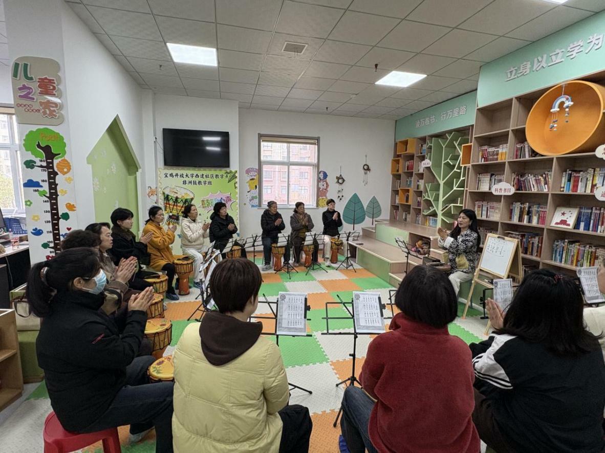 3月25日,宝鸡开放大学老年教育“鼓动心声”公益非洲鼓教学班在西建社区正式开班。