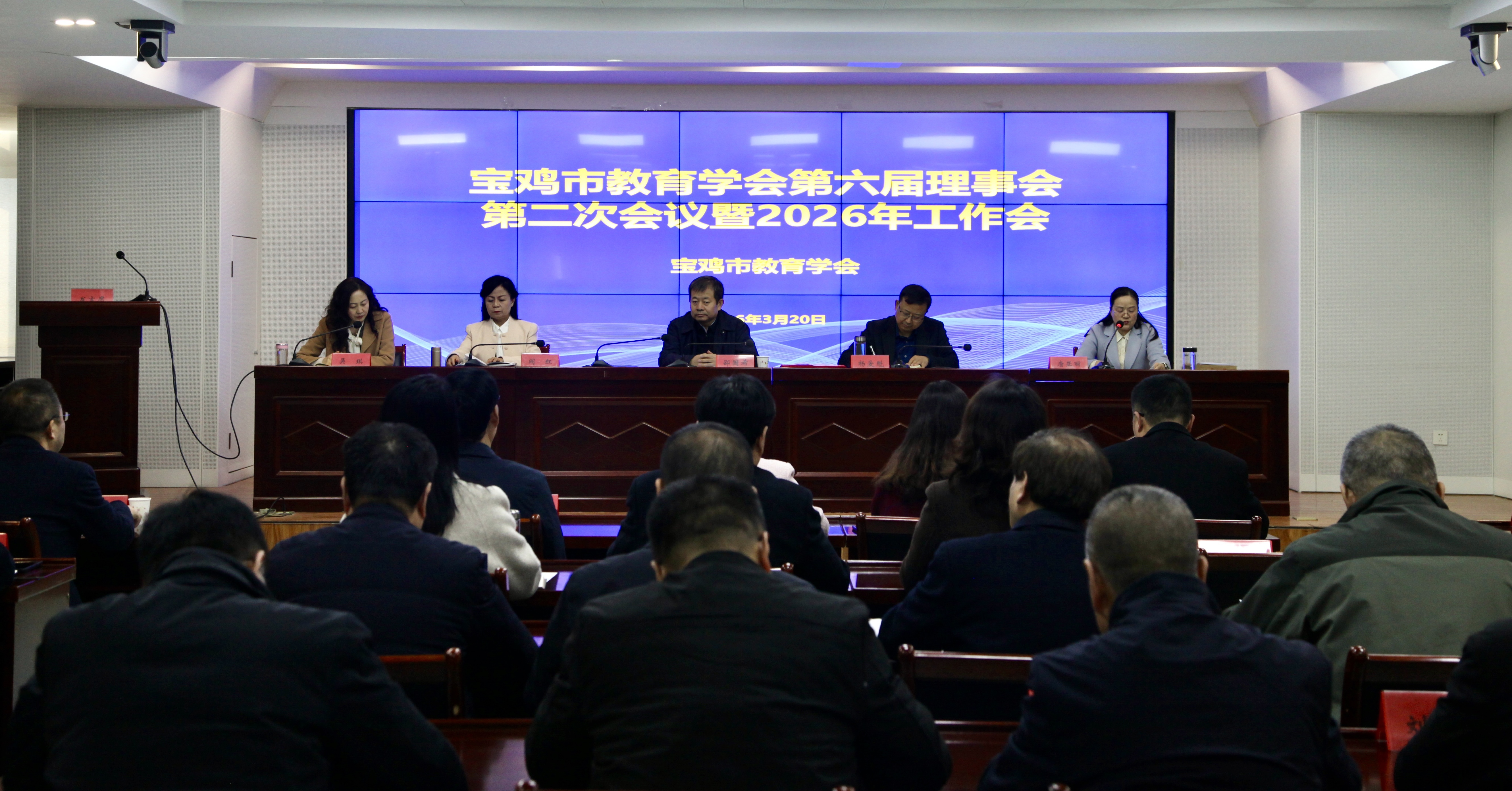 3月20日,宝鸡市教育学会第六届理事会第二次会议暨2026年工作会在市教育中心召开。会议全面总结2025年学会工作成效,安排部署2026年重点任务,进一步凝聚共识、汇聚智慧,为推进宝鸡教育强市建设、全力打造“宝鸡好教育”品牌聚力赋能。陕西省教育科学研究院党总支书记、院长,陕西省教育学会常务副会长邵国希作学术主旨报告,宝鸡市教育局党组成员、副局长杨爱魁和宝鸡市教育教学研究室党支部书记、主任阎红出席会议并讲话。市教育学会第六届理事会全体理事、监事、特聘专家及县区教育学会负责人参会。会议由宝鸡市教育教学研究室副主任、宝鸡市教育学会会长唐亚丽主持。