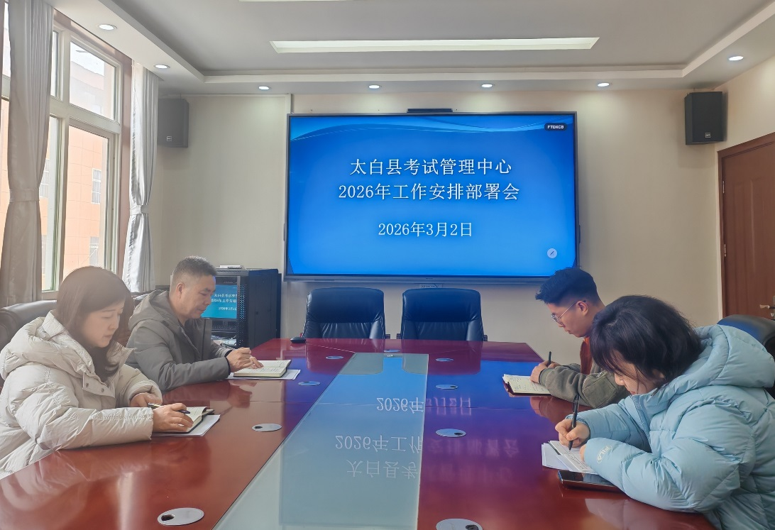 一元复始,万象更新。为了深入贯彻落实各级教育工作会议精神,全面梳理2025年工作成效,系统谋划2026年重点任务,进一步统一思想、凝聚共识、明确目标、压实责任,3月2日,太白县考试管理中心组织全体人员召开了2026年工作安排部署会。