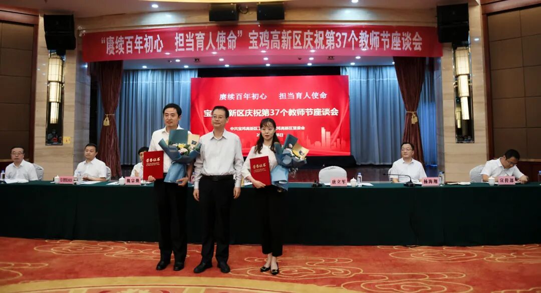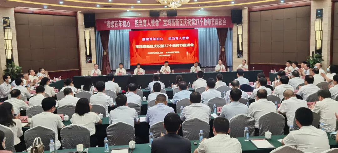 9月8日上午,“赓续百年初心·担当育人使命”宝鸡高新区庆祝第37个教师节座谈会召开,进一步激励全区广大教师不忘教书育人初心,勇担为党育人、为国育才光荣使命。高新区党工委书记、管委会主任李峰科参加会议并讲话。