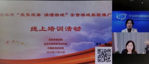 11月12日上午,宝鸡市“聚焦观察 读懂游戏”安吉游戏实验推广线上培训活动成功举行。本次培训旨在落实教育部“安吉游戏”推广计划,提升我市教师观察儿童和解读游戏能力,引导幼儿园思考和探索“安吉游戏”本土化实践,全面深化以游戏为基本活动的幼儿园课程改革。活动由市教育局主办、市教研室承办,中国教师研修网协办,全市幼儿园园长、教师参加培训。