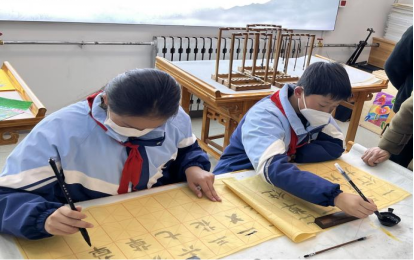 “起笔稳如立世沉心,行笔韧似追梦坚毅。”书法指导老师的谆谆教诲,伴着笔墨沙沙声萦绕耳畔。一年级学生稚嫩小手紧握笔杆,一笔一画临摹“德”字,认真的笔迹藏着对品德最纯粹的向往;书法社团成员屏息凝神,四十分钟反复打磨楷书作品,额角细汗、指尖墨痕,见证着 “慢工出细活”的专注与韧劲。书法的“水磨功夫”,正将耐心、恒心、匠心融入学生成长轨迹,让锲而不舍的精神生根发芽。