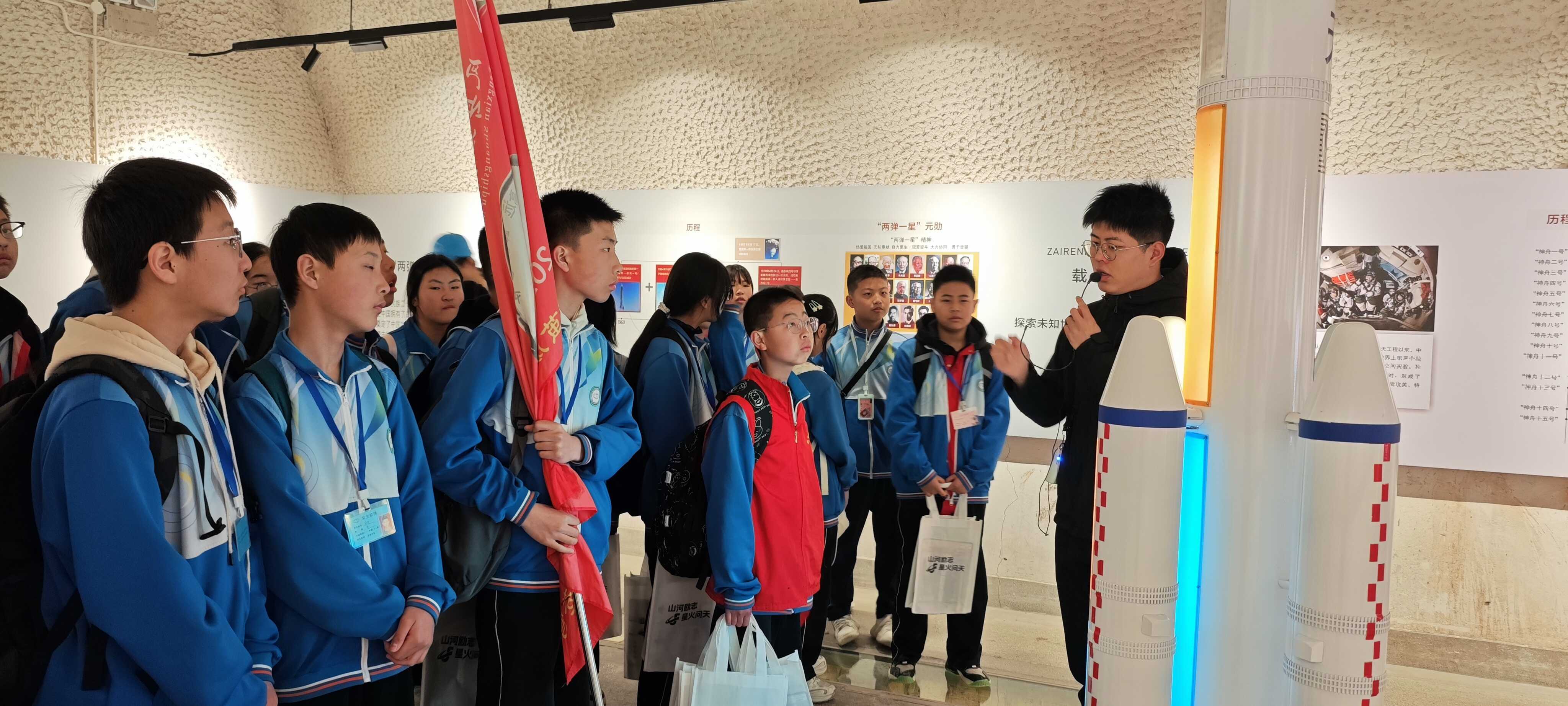 博物馆里的思政课,有温度更有力量。在凤县革命纪念馆,校长带来一堂生动鲜活的思政课,他结合两当兵变革命史实、红光沟航天精神、秦岭生态保护,深情讲述凤县从红色革命奋斗、航天科技攻坚到生态绿色守护的发展历程,引导学子深刻感悟红色初心,自觉扛起新时代少年的责任与担当。在凤州航天纪念馆、201洞航天旧址,学校思政、历史教师结合实景,为同学们深入解读“特别能吃苦、特别能战斗、特别能攻关、特别能奉献”的航天精神,深挖凤县与国家航天事业的深厚本土联结,让学子在红色传承中厚植科技报国的理想。