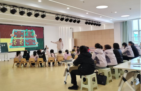 活动以教学研讨为抓手,扎实开展党员示范课与区域活动交流。城关幼儿园党员教师任丹展示大班语言活动《春雨的色彩》,以情境导入、多媒体辅助、情感化诵读,引导幼儿感受散文诗之美,充分展现党员教师过硬的专业素养。宝鸡幼儿园教师代表围绕活动设计、师幼互动、教学实效等进行精准点评,达到以研促教、共同提升的目的。在区域活动观摩中,宝鸡幼儿园保教主任张莉现场指导,分享环境创设先进经验与实践方法,为两园保教质量提升提供有力借鉴。