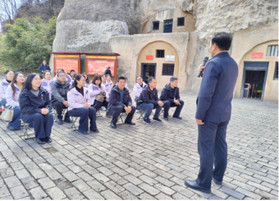 随后,全体党员前往中共麟游总支特支旧址、崔木知青大院开展党性教育。县委党校讲师深情讲述麟游革命历史,重点介绍早期共产党员赵伯经同志为革命舍家为国、坚守信仰的感人事迹,激励大家坚定理想信念、永葆初心使命。在知青大院,党员们通过实物、图片、场景复原,深刻感悟知青一代艰苦奋斗、无私奉献的精神。全体党员面向党旗庄严宣誓,重温入党誓词,进一步强化党员意识、筑牢思想根基。