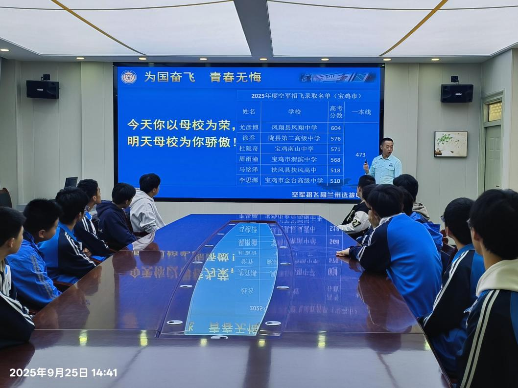 根据2026年度空军招飞工作安排,9月25日,空军招飞局兰州选拔中心走进太白县太白中学,进行2026年度空军招飞工作入校宣讲。