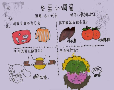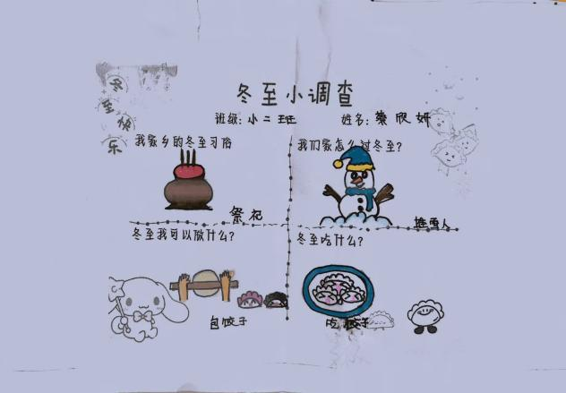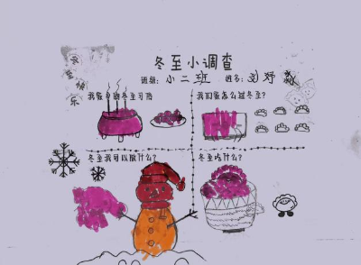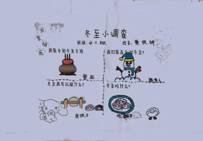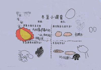 带着对“冬至”的好奇,孩子们和爸爸、妈妈共同完成了“冬至知多少”调查问卷,初步了解冬至节气的由来和习俗。