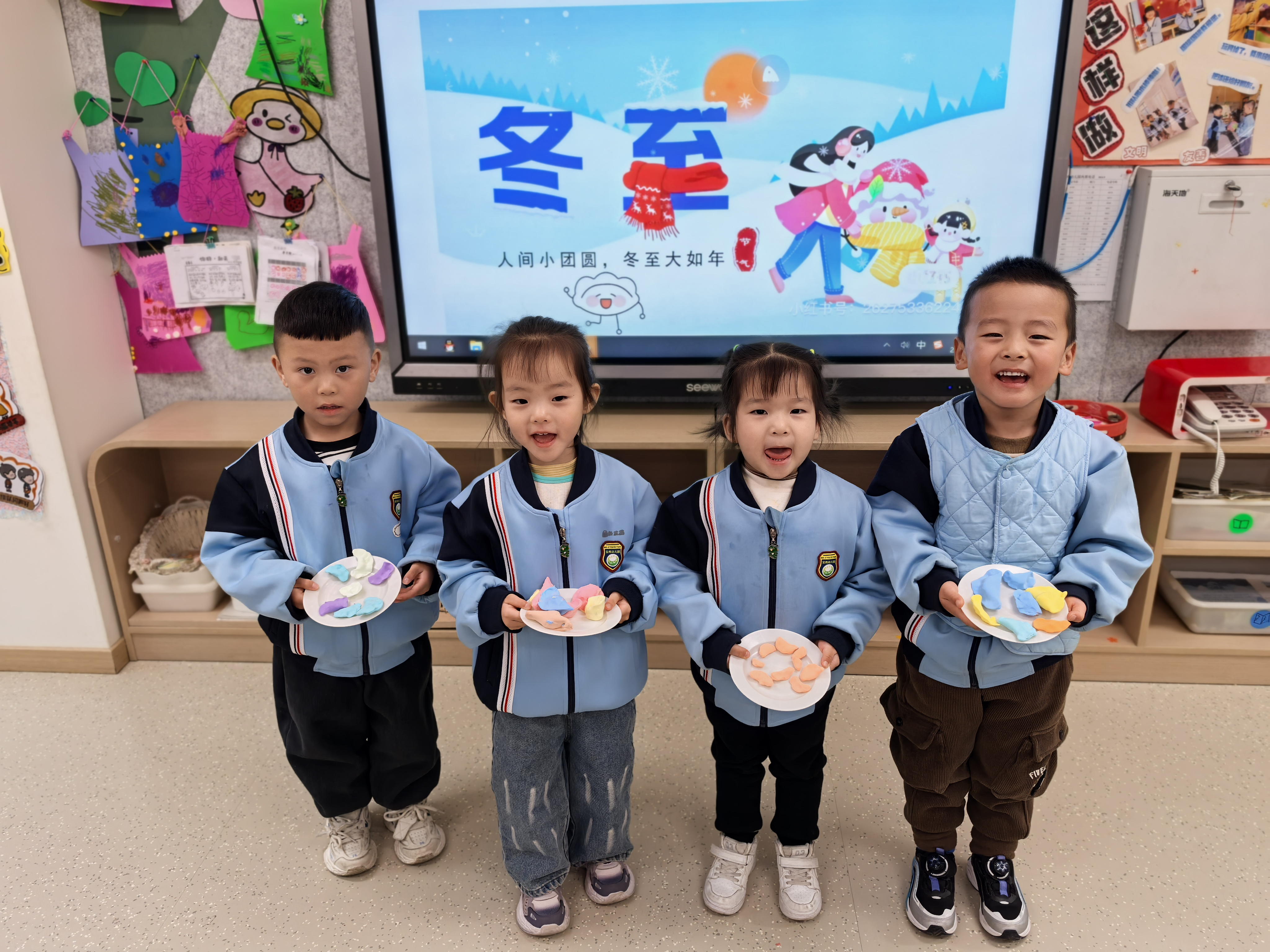 在这个寒风凛冽却温情满满的冬至时节,幼儿用他们稚嫩的小手,创造了一幅幅充满创意与想象力的美术作品,将传统节气与现代艺术巧妙融合,每一件作品都承载着他们的热爱与祝福,也成为了幼儿园冬日里一道亮丽的风景线。