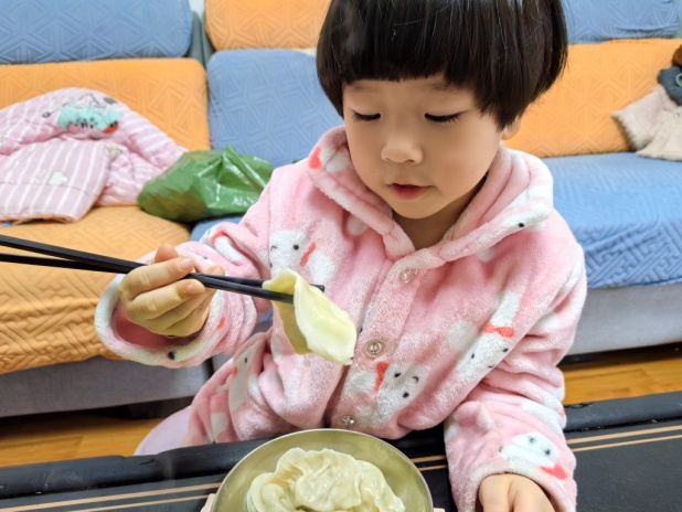 吃着饺子,