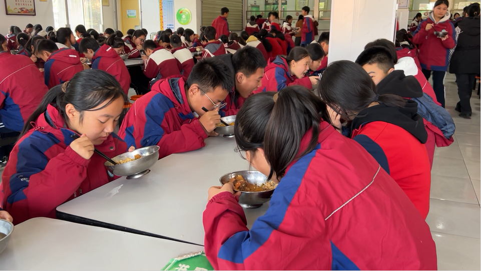 随着午间下课铃声响起,槐芽初级中学厨务人员将热腾腾的一荤两素一汤已准备到位。该校总务主任赵奇刚说,为了让学生吃到色香味俱全的校园餐,新鲜蔬菜都是当日采买,根据拟定的AB食谱烹制,每两周不重样,学校还会根据季节变化进行膳食调整。“入冬后气候干燥,学校调整了食谱,主打清淡少辣,在饭菜可口的同时做到健康营养”。