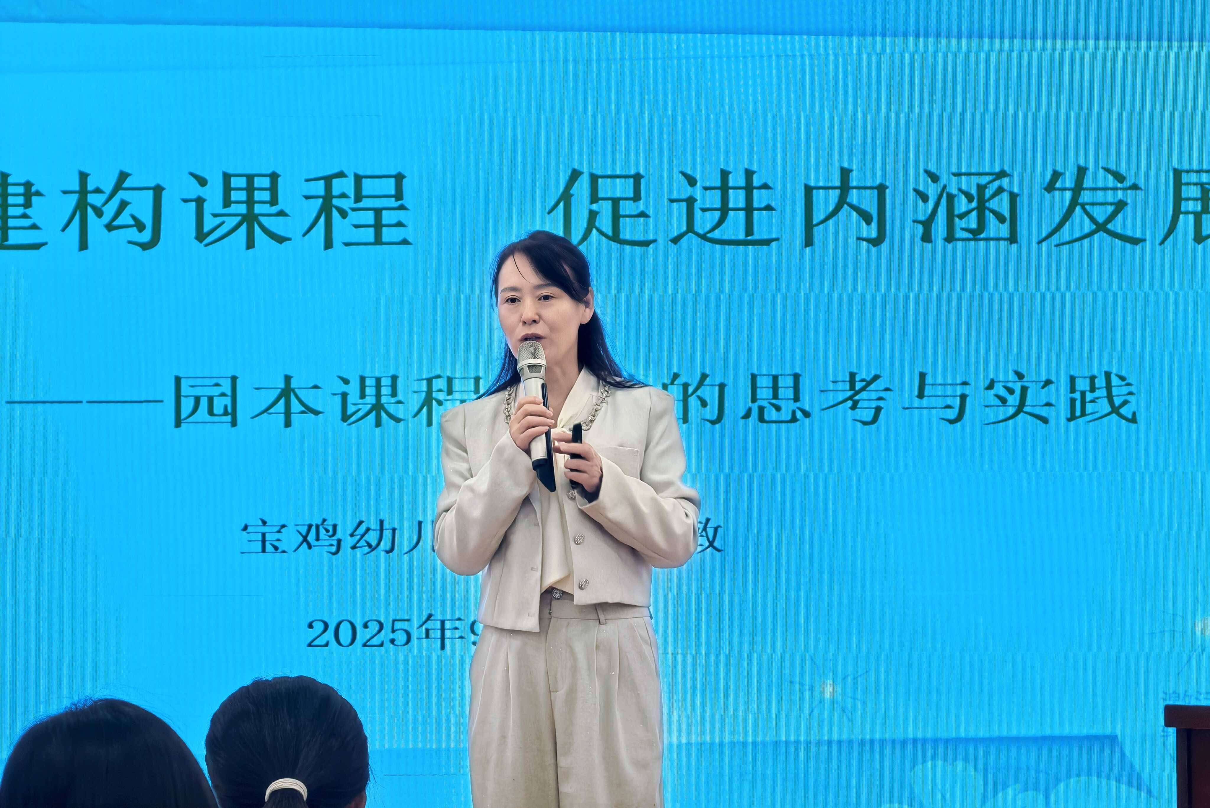 宝鸡幼儿园园长汶小敏介绍了幼儿园的办园理念与文化特色,承诺为学员搭建高质量的学习交流平台。副园长赵红系统解读“三维浸润·四力进阶”培训方案,涵盖课程浸润、实践浸润与文化浸润三大维度,助力教师能力阶梯式提升。