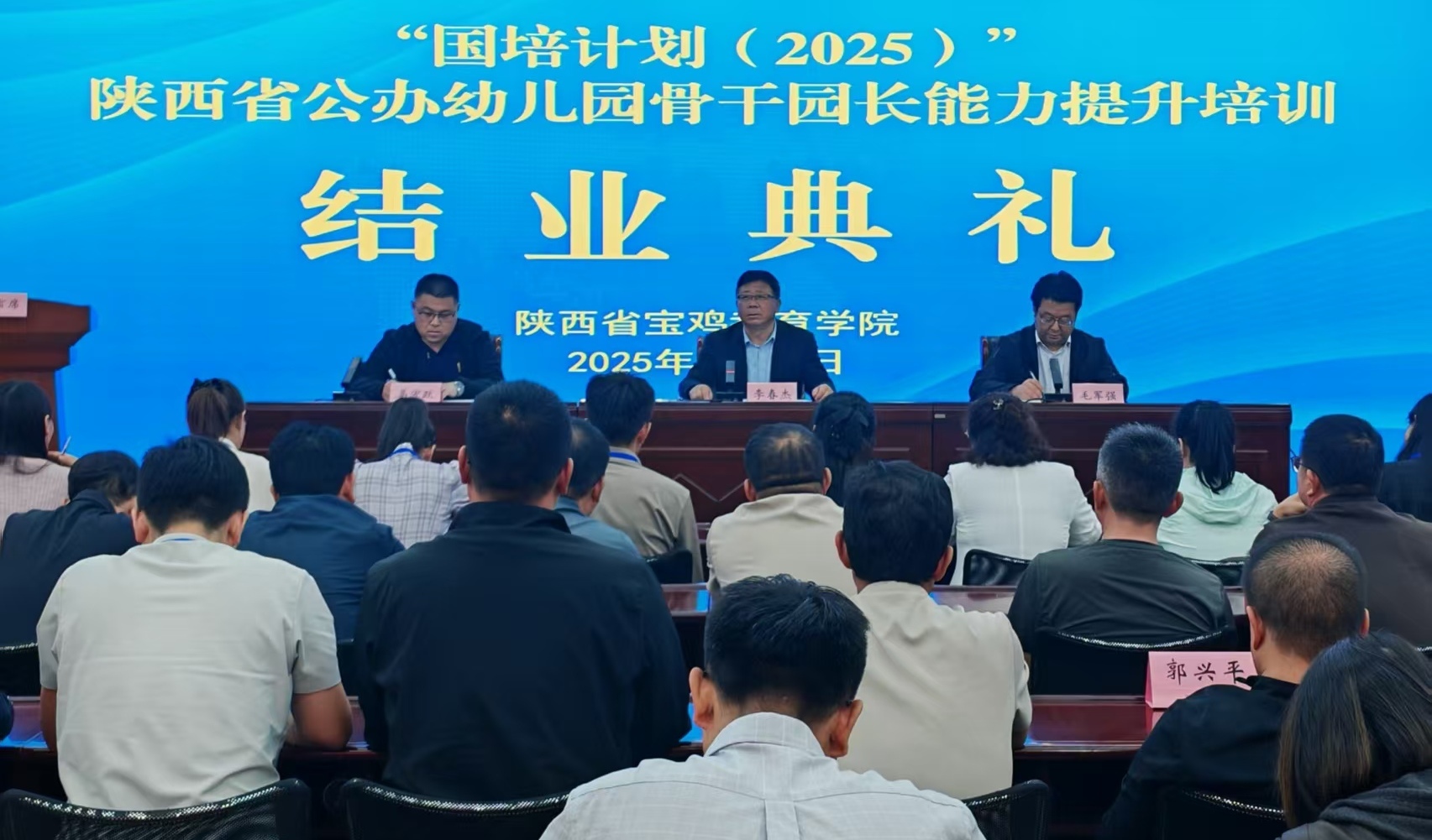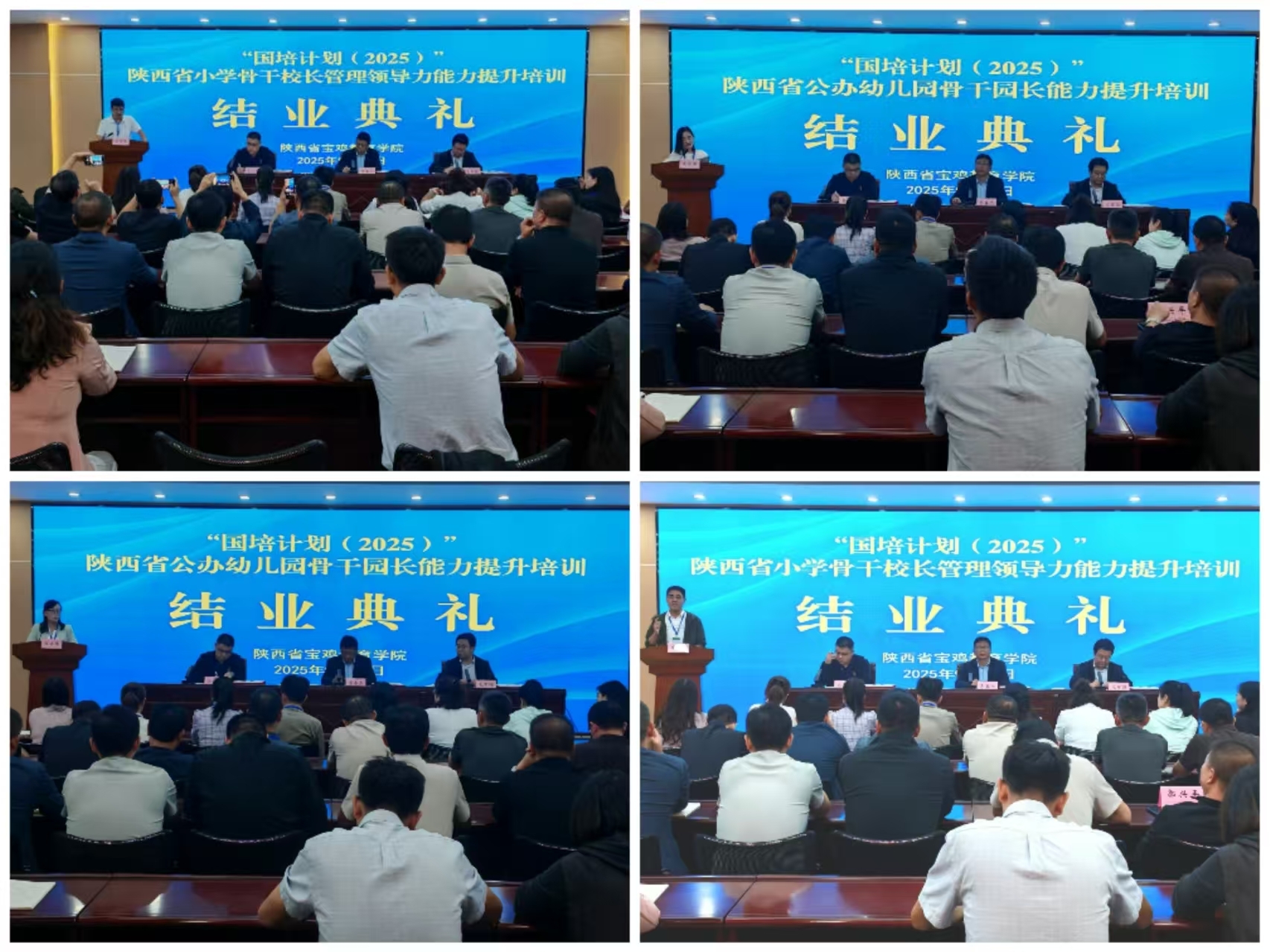 9月25日,“国培计划(2025)”——陕西省公办幼儿园骨干园长能力提升培训项目、陕西省小学骨干校长管理领导力能力提升培训项目结业典礼在宝鸡教育学院顺利举行,来自全省的100余名校(园)长圆满完成了为期12天的集中培训,院长李春杰出席结业典礼并讲话。