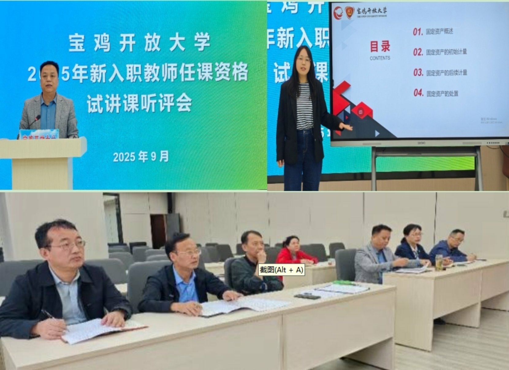 9月26日,宝鸡开放大学召开2025年新入职教师任课资格试讲课听评会,副校长王晓伟、评审组成员参加会议并对试讲课进行点评。