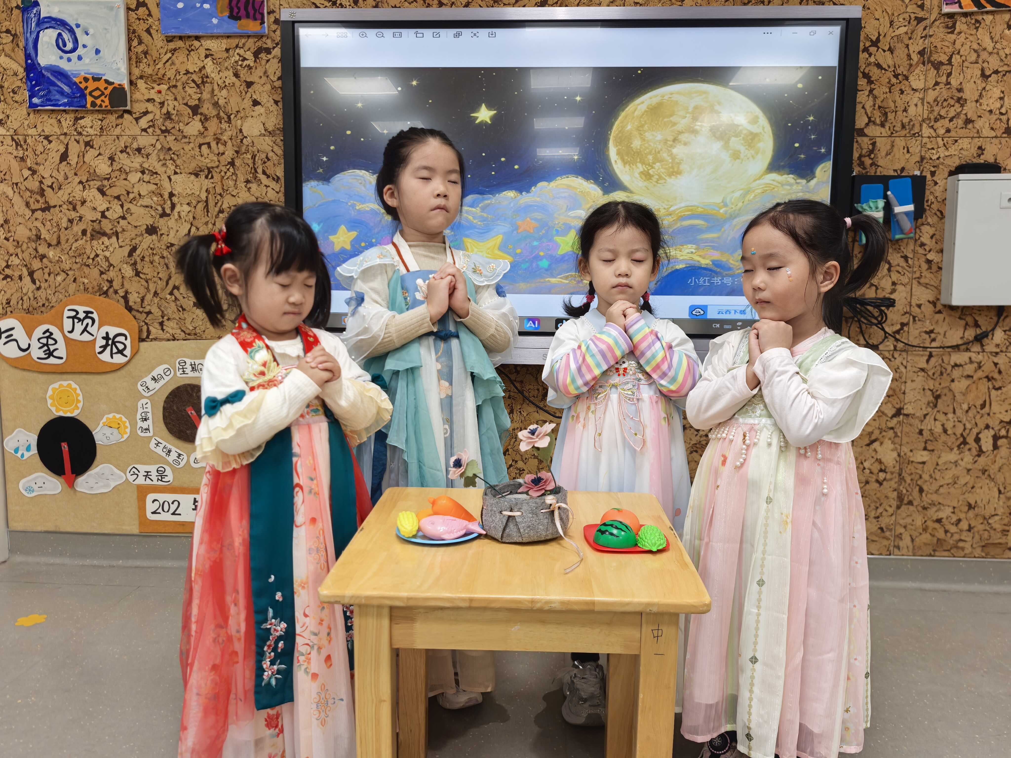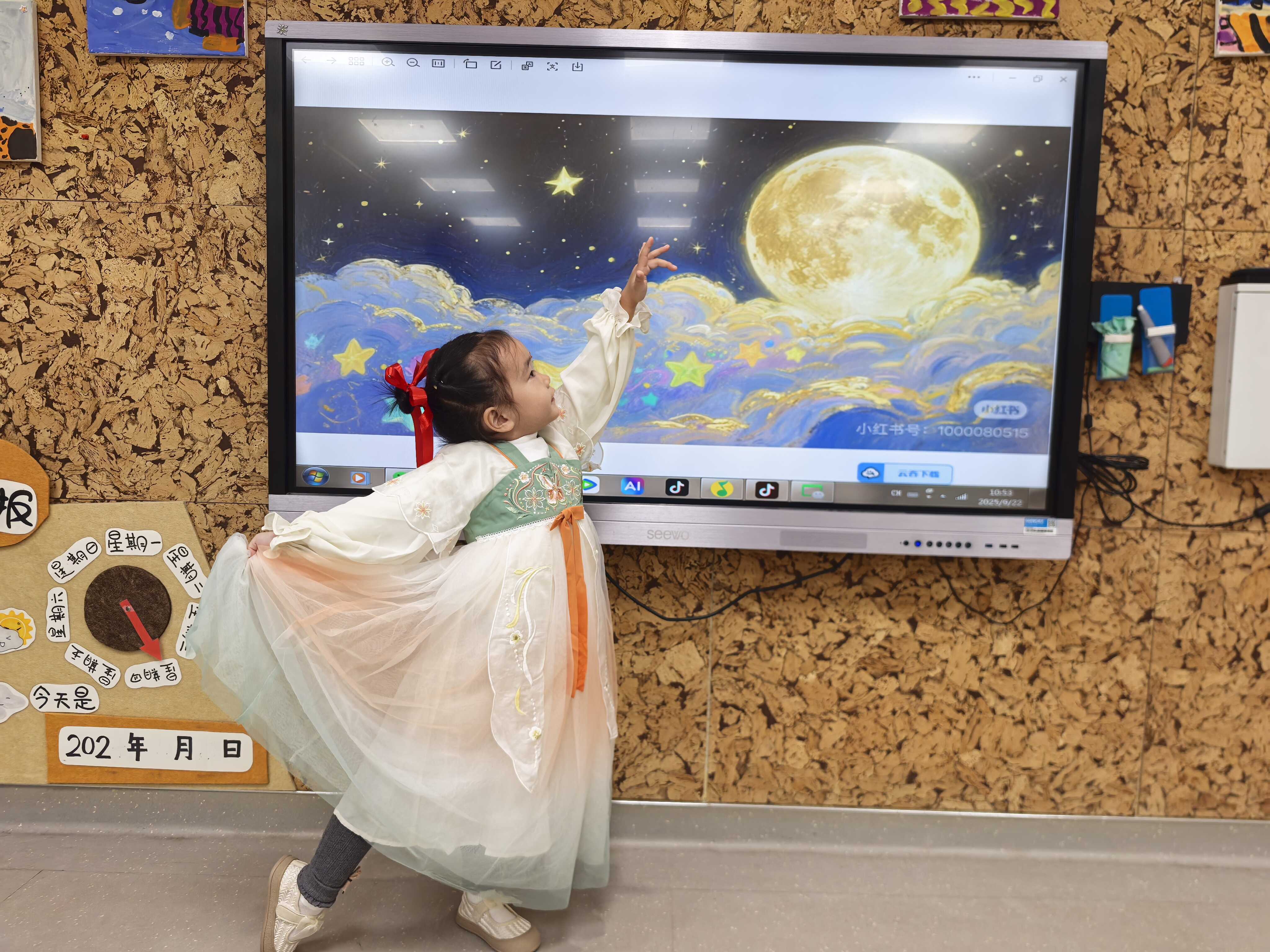 情景剧表演将活动推向高潮。小朋友们化身故事角色,生动演绎“嫦娥奔月”的经典传说。从后羿射日的英勇果敢,到嫦娥奔月的温情缱绻,小演员们用稚嫩却真挚的表演,将中秋文化中“团圆美满”的核心内涵展现得淋漓尽致。