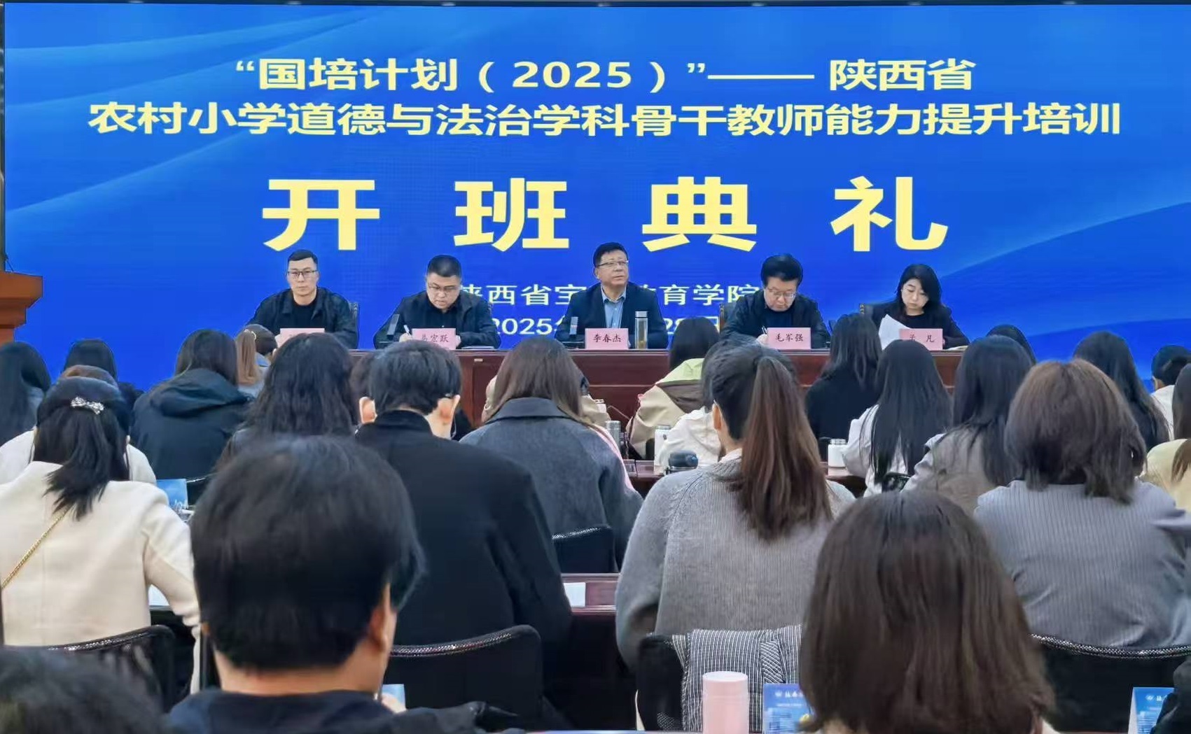 10月28日上午,“国培计划(2025)”陕西省农村小学道德与法治学科、幼儿园骨干教师艺术领域教学能力提升项目顺利开班。宝鸡教育学院院长李春杰、副院长毛军强出席开班典礼并讲话,教务处处长易宏跃主持,来自全省的近百名小学道德与法治、幼儿园学科骨干教师参加开班典礼。