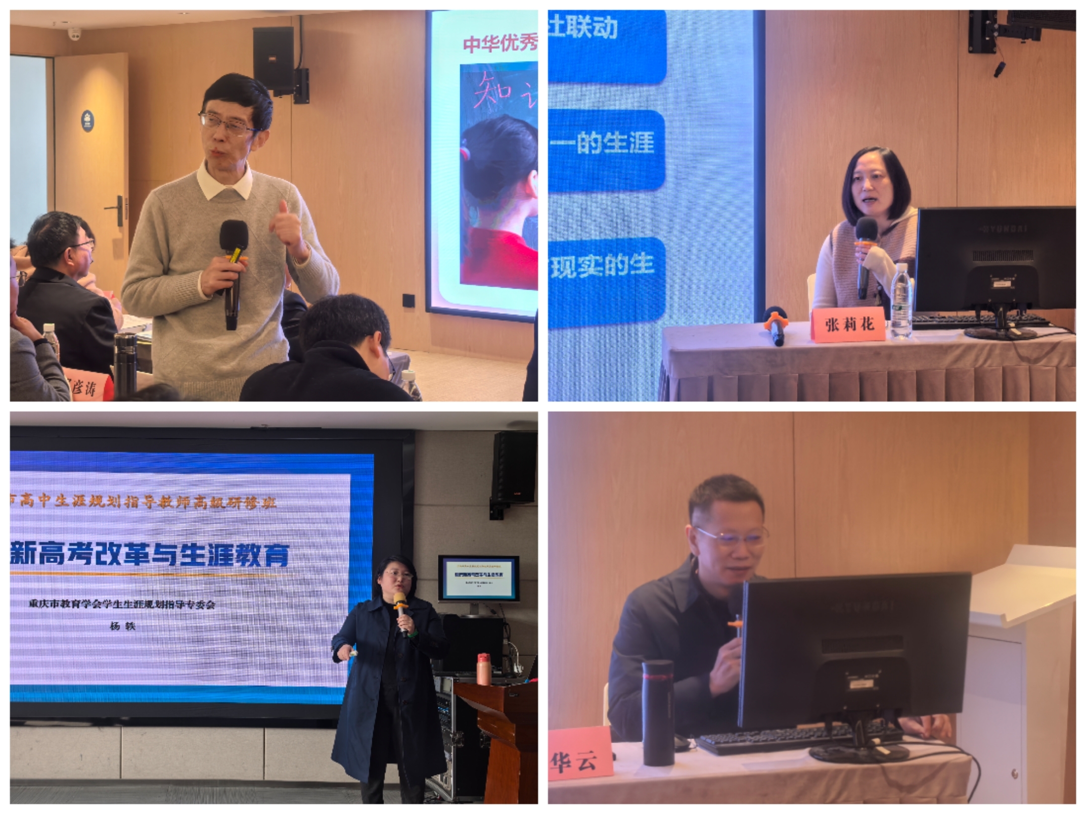 培训以研究生涯教育领域专家专题讲座为核心,以新高考改革优质校为载体,构建了从理论到实践的完整认知体系。重庆市南岸区教师进修学院培训首席专家朱括以《新高考下的生涯规划教育探索与实践》为题,开启一场“头脑风暴”,从政策顶层设计到地方实践探索,深入浅出地厘清了生涯教育的时代脉络与实施框架。重庆市南开中学副校长张莉花凭借其深厚的学术素养和丰富的管理经验,在《普通高中生涯规划教育定位的思考与实践》专题报告中,深度解码了南开中学“生涯+学科”融合育人模式,揭示了将生涯教育渗透于教育教学全过程的实践路径。重庆市教育学会学生生涯规划指导专委会成员杨轶在《重庆新高考改革与生涯教育》讲座中,深刻剖析了新高考改革的内在逻辑与深远影响。她强调,学校必须系统推进生涯教育,有效整合校内外资源,搭建多元化平台,为落实生涯教育提供有效保障。沙坪坝区教师进修学院院长余华云围绕“教育综合改革背景下的高中生涯教育理念”,紧扣“为何推进、如何开展、怎样落地”三大核心问题,结合丰富的本土实践经验,为学员们提供了一套兼具前瞻性与实操性的行动指南。