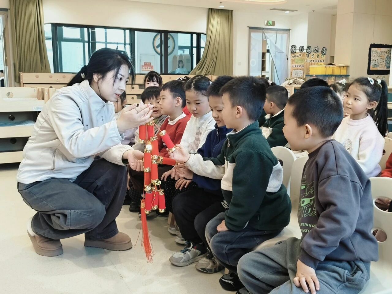 “年兽为什么怕红色?”“福字为什么要倒着贴?”老师通过生动的动画和趣味故事讲解年俗,孩子们睁大好奇的眼睛,在问答互动中揭开传统节日的神秘面纱。分享环节里,孩子们踊跃讲述新年习俗,文化认同感在潜移默化中悄然生根。