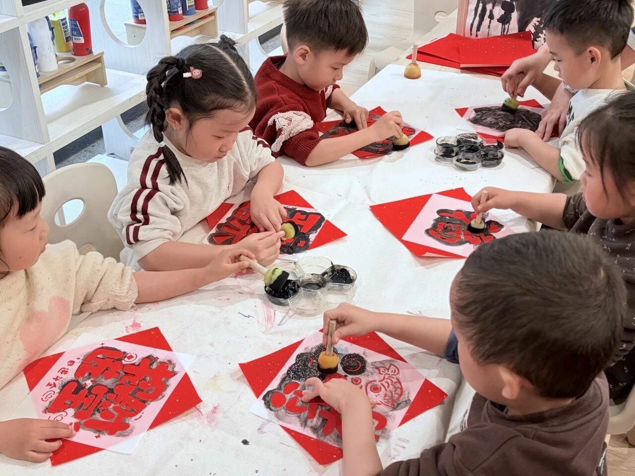 一张张鲜红的卡纸在孩子们手中翻转、折叠、粘贴,普通的红色卡纸,在孩子们的巧思创作下,渐渐变成了造型别致的中国结。与此同时,孩子们手握毛笔,在红纸上认真勾勒“福”字,朱红的“福”字跃然纸上,与身旁的中国结相映成趣,既让孩子们在笔墨与手工中感受了传统年俗的魅力,更将满满的福气与对新年的美好向往,细细镌刻在童年的记忆里。