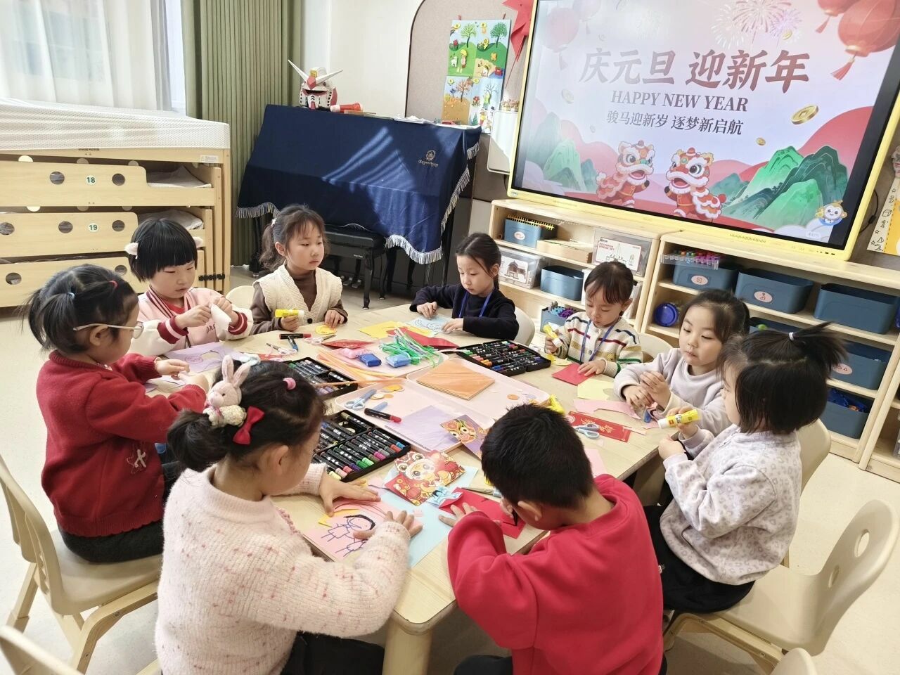 大班孩子拿起画笔、写下稚嫩的新年祝福,“祝爸爸妈妈新年快乐”“希望老师天天开心”。一张张贺卡虽朴实无华,却饱含着孩子们最纯真的情感,成为传递爱与温暖的珍贵载体。