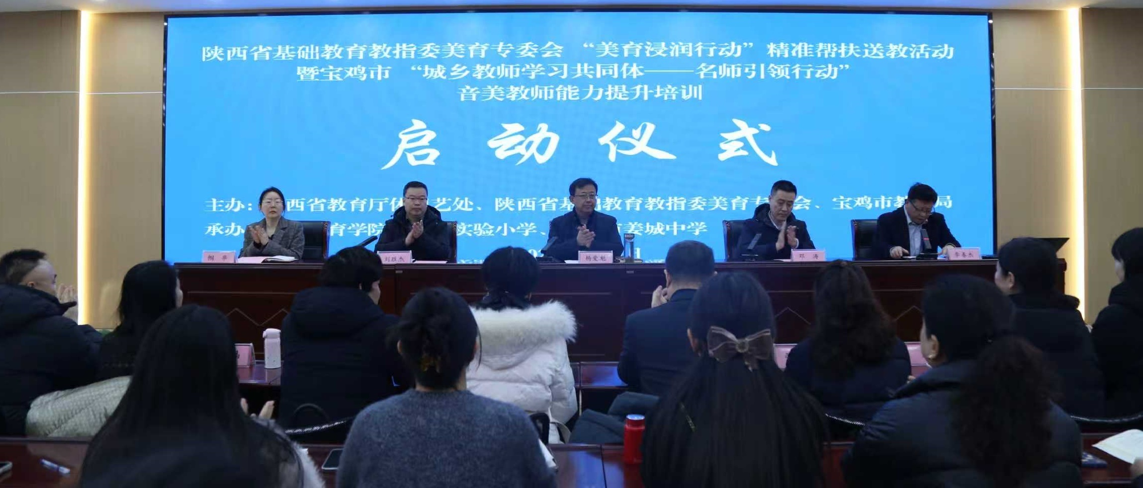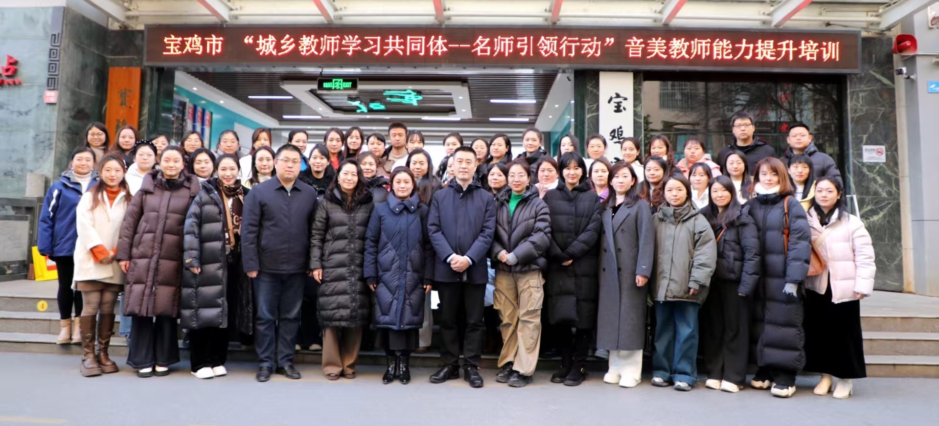 为深入贯彻新时代学校美育工作要求,助力宝鸡市“城乡教师学习共同体——名师引领行动”落地见效,推动城乡美育资源均衡共享,1月9日,由宝鸡教育学院承办的陕西省基础教育教指委美育专委会“美育浸润行动”精准帮扶送教活动暨宝鸡市音美教师能力提升培训圆满举行。宝鸡市教育局党组成员、副局长杨爱魁出席启动仪式并讲话,陕西省基础教育教指委美育专委会副主任委员邓涛出席,陕西省基础教育教指委美育专委会副主任委员刘胜杰出席并介绍美育教指委相关情况,宝鸡教育学院院长李春杰主持启动仪式,宝鸡市教育局教师工作科科长帼华出席启动仪式。宝鸡市“城乡教师学习共同体——名师引领行动”项目县及其他县区中小学音乐、美术学科骨干教师及宝鸡市教师合唱团全体成员参加仪式。活动以“美育资源城乡共享·音美课堂实践创新”为主题,汇聚省市级美育专家团队与全市各区县200余名音美骨干教师,通过专题报告、课例展示、点评研讨等多元形式,为参训教师送上了一场高质量的美育“盛宴”。