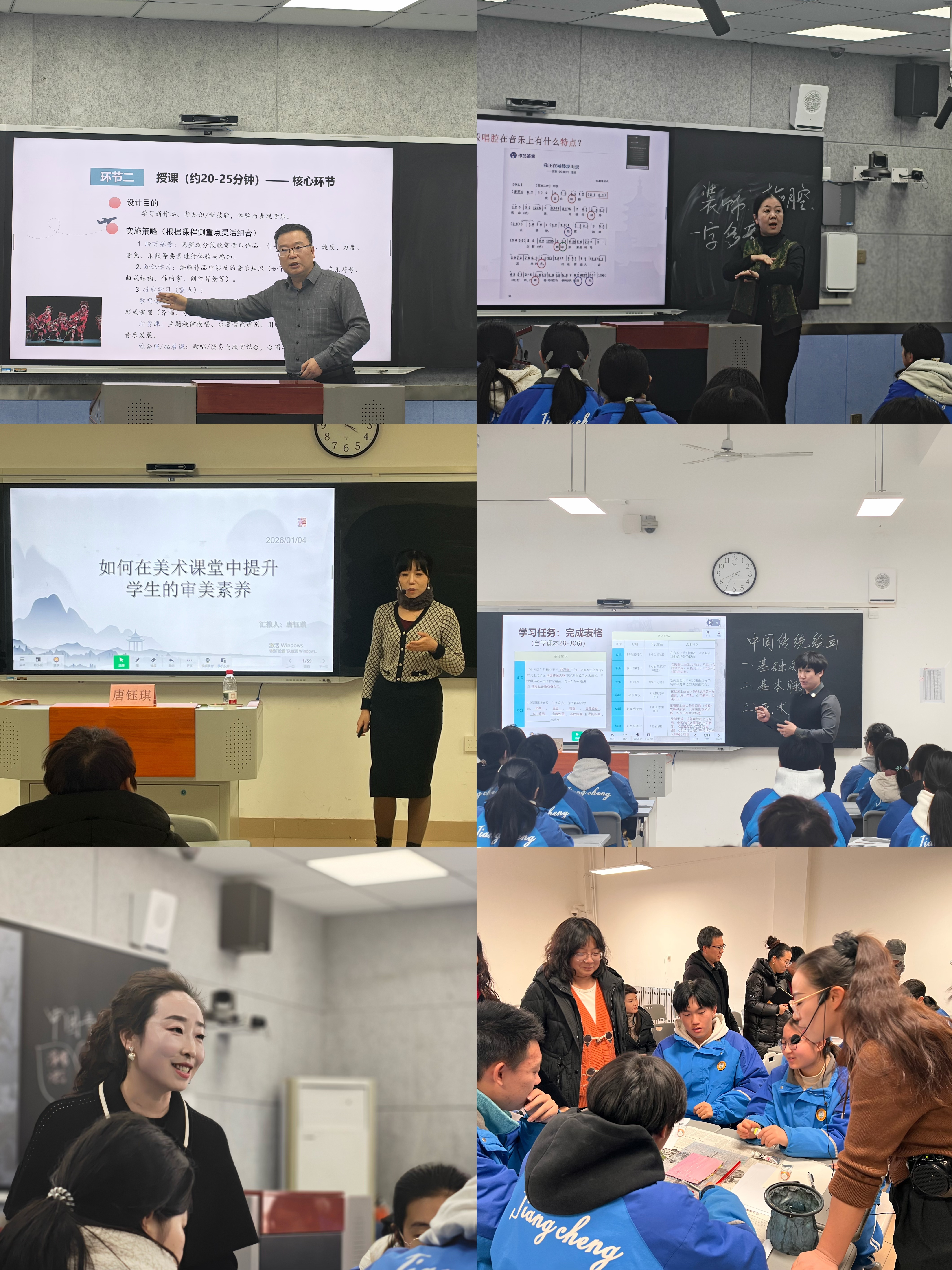 课例展示后,专家点评与微报告环节深化了学习成效。陕西省教育科学研究院张华钟老师以《用美育塑造文化自信——艺术课程音乐学科课标解读与素养提升》为题,结合小学音乐示范课精准解读新课标要求;西安市教育科学研究院刘胜杰老师带来《音乐学科教学设计与课堂结构的优化与实施》微报告,为中学音乐教学提质增效支招。美术学科方面,特级教师邓涛对小学美术课例进行靶向点评,陕西省教育科学研究院唐钰琪老师以《如何在美术课堂中提升学生的审美素养》为主题分享实践路径,邓继群老师则结合高中美术课例与参训教师深入研讨教学创新方法,现场交流氛围热烈。