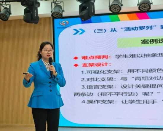 在培训中,王晨老师系统解构了专业化教学设计的“四梁八柱”。精准评估(起点之梁)部分,她重点讲解了“教学内容分析四步法”与“学情分析四维度”,引导教师从“教教材”转向“用教材教”,并将“以学定教”具体化为可评估、可操作的学生维度。清晰目标(终点之梁)部分,她倡导使用包含“主体、行为、条件、程度”四要素的差异化目标撰写法,使目标可观测、可测量。循证路径(过程之柱)部分,她提出了目标导向、预判难点、小步循环、嵌入式评价、意图显性化五大核心原则,为教学行动提供清晰蓝图。最后,她强调构建完整系统(支持生态),将教学准备、作业布置、板书设计、教学反思视为支持学生学习的闭环。