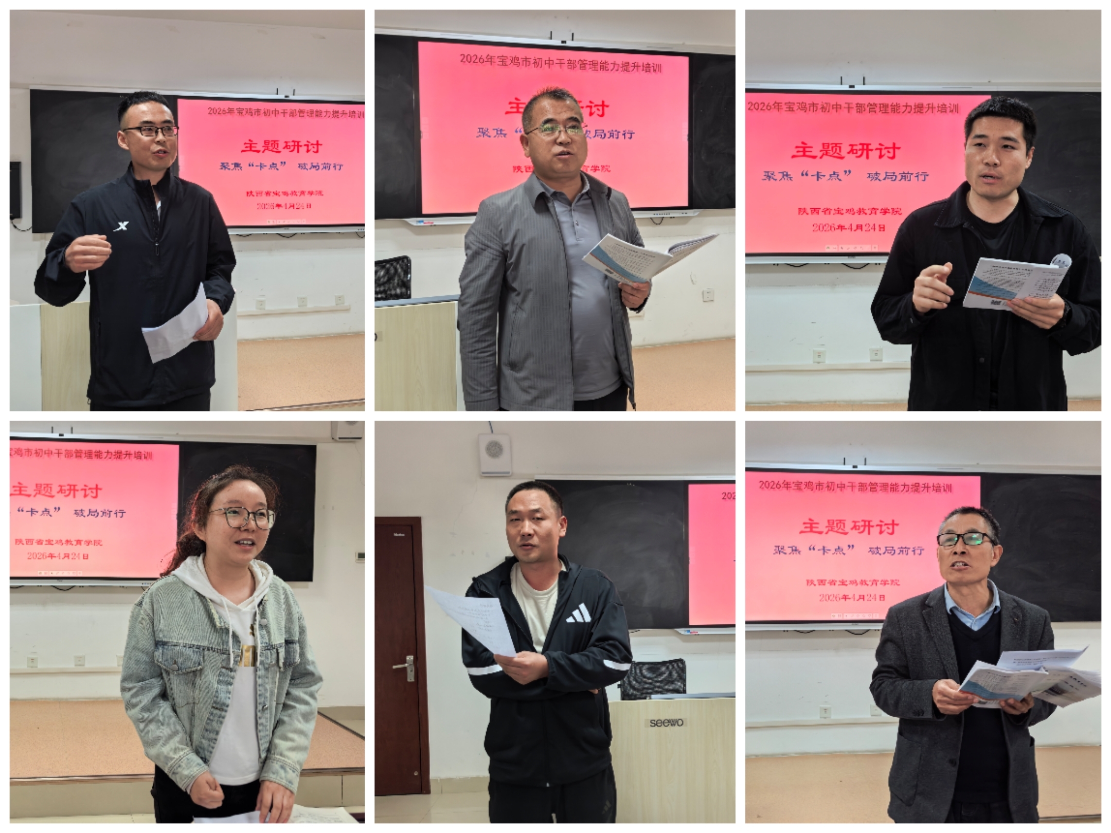 为深入贯彻落实新时代基础教育改革要求,进一步提升初中学校管理干部的专业素养与履职能力,落实立德树人根本任务,4月19日至24日,由宝鸡市教育局主办、宝鸡教育学院承办的“2026年宝鸡市初中干部管理能力提升培训”顺利举行。来自全市各县区的初中校级领导及中层管理干部共49人参加培训,圆满完成集中研修任务。